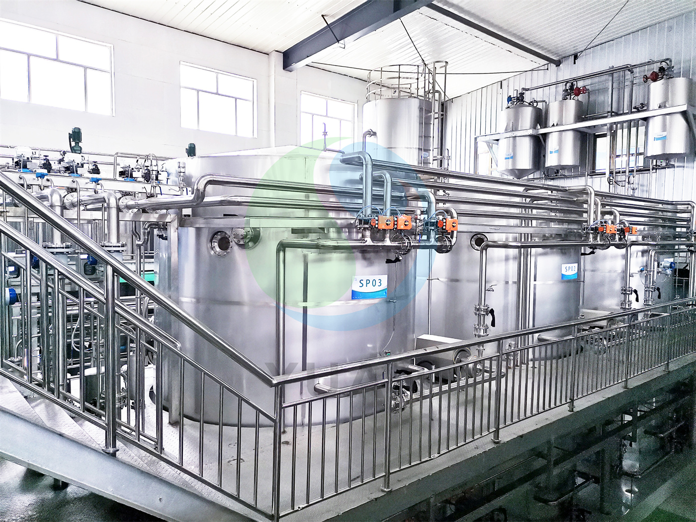 El almidón comercial se envía al tanque de disolución y se disuelve agregando agua. Luego, ingresa al tanque de mezcla de suspensión, a través de la detección y el control en línea, ajusta el valor DS, el valor de pH y la cantidad enzimática de la leche de almidón, y luego ingresa al sistema automático de licuefacción. Adopte dos veces la expulsión, dos veces parpadeando, mantenga la temperatura apropiada. y cierto tiempo, para garantizar el mejor efecto de licuefacción. Después de la licuefacción, a través del ajuste del pH y la adición de enzimas, el jarabe se envía al sistema de sacrcharificación. Al controlar la cantidad de enzima y el tiempo de sacarificación, se alcanza el valor de DE o DX requerido por el producto final, y la glucosa ingresa a la etapa de filtración para eliminar las menos proteínas y otras impurezas mezcladas en el producto. Después de la filtración, la glucosa líquida pasa por el sistema de intercambio de iones decolorante, filtrado y continuo para eliminar las impurezas de color y los iones de impureza de la glucosa, de modo que la glucosa pueda lograr el propósito de refinar y purificar. Después de la evaporación, la glucosa ingresa al sistema de isomerización para obtener la fructosa del 42%. A través de la refinería y la evaporación, F42 ingresa al sistema de cromatografía. Las mezclas F90 producidas con F42 para obtener el F55 grueso, luego a través de la refinería y evaporación F55, se obtendrá el producto F55 calificado.